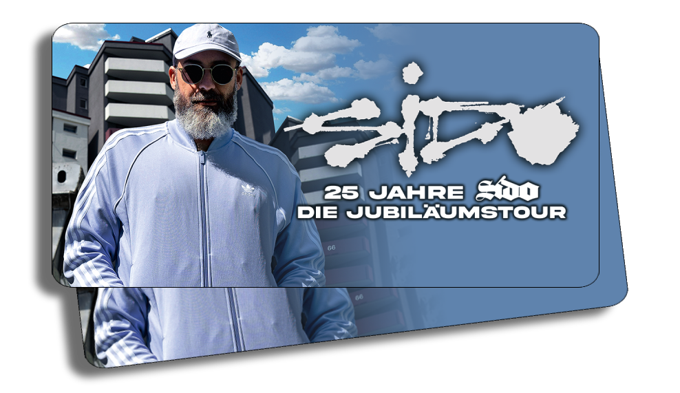 Bitte gib auf der nächsten Seite deine Gewinndaten ein und gewinne 2 Tickets für die Jubiläumstour von SIDO!